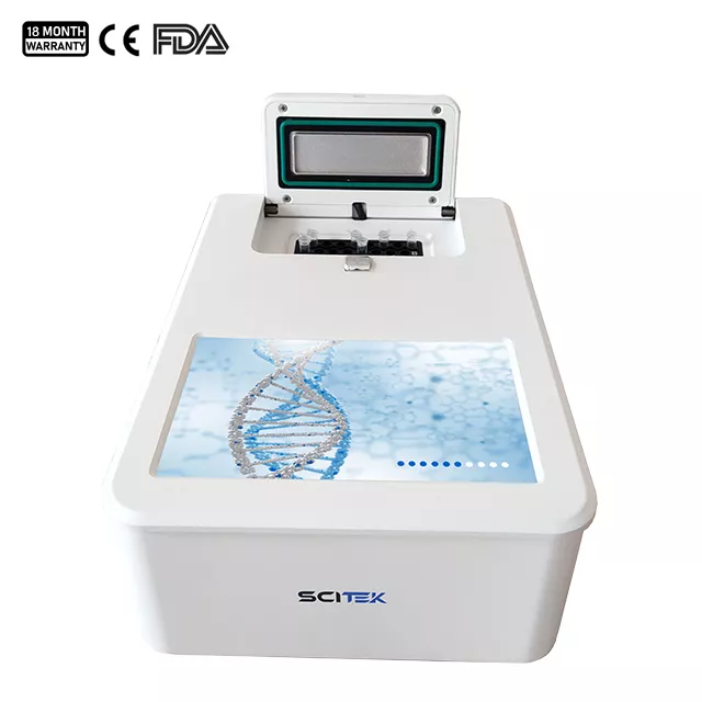 This isothermal amplification fluorescence PCR detection system is an advanced laboratory equipment designed for rapid and accurate detection of nucleic acids. The fluorescence PCR detection system combines isothermal amplification technology with fluorescence detection, enabling DNA or RNA amplification at a constant temperature and real-time monitoring of the amplification process. Its high sensitivity and specificity make it ideal for molecular diagnostics, pathogen detection and gene expression analysis.