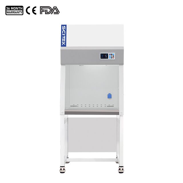- Laminar flow cabinet is equipped with an LCD display and microprocessor control system.